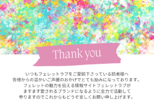 フェレットを知らない人が見たら飼いたくなる記事を。コンセプトにメディア発信活動をしております少しでも皆さまのお役に立てたら光栄です 🙂